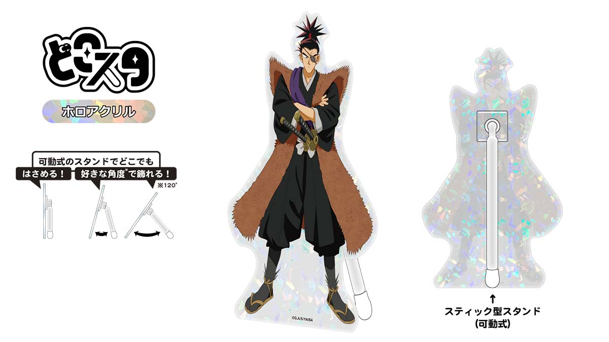 背面に可動式のスタンドがついているので好きな角度で飾ることができる新形態のアクリルスタンドです。 スタンドを畳んでポケット等にはさんで使っても◎ ※スタンドの可動率は約120°になります。 艶やかな光沢と丸みが特徴のエポキシ樹脂をドーム状に盛る表面加工をしています。 第三弾ラインナップ(全1種):柳生十兵衛三厳