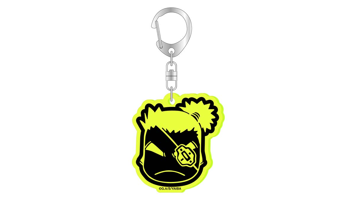 蛍光アクリルを使用したキーホルダーです。 表面にツヤのある透明トップコート剤を塗布しています。 第二弾ラインナップ(全1種):柳生十兵衛三厳