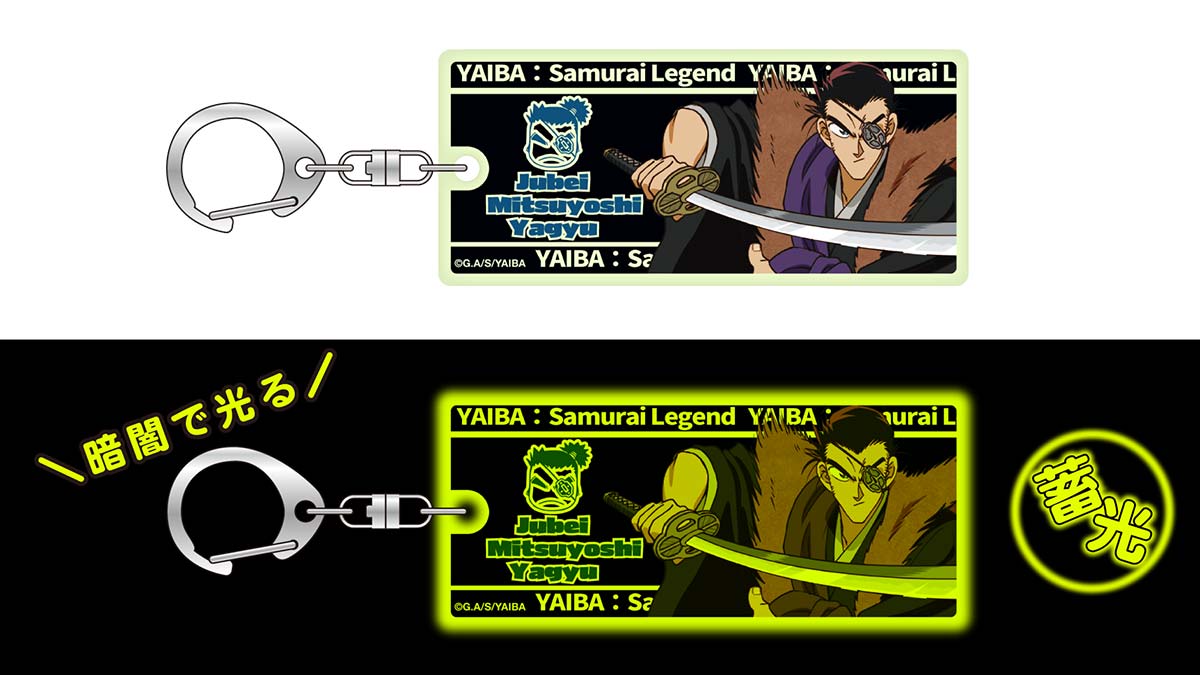 暗いところで発光する蓄光キーホルダーです。 夜道を歩くときにも役立つアイテムです。 太陽光や紫外線を含むライトで光を蓄えるとより効果的に光ります。 艶やかな光沢と丸みが特徴のエポキシ樹脂をドーム状に盛る表面加工をしています。 第三弾ラインナップ(全1種):柳生十兵衛三厳