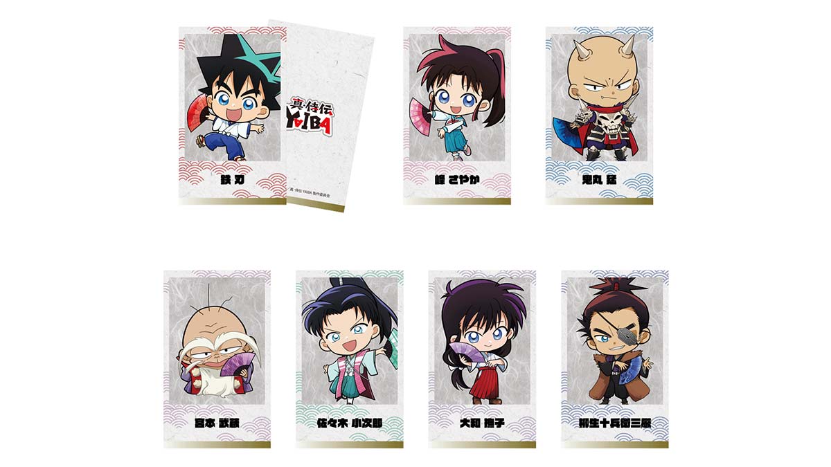 「イメージカラーの扇子を持ったキャラクターたち」をコンセプトに描き起こされた鉄 刃、峰 さやか、鬼丸 猛、宮本 武蔵、佐々木 小次郎、大和 撫子、柳生十兵衛三厳の雅なデフォルメイラストを使用したミニサイズのカードセット。 スマートフォンのケースやカードケースなどに挟んで持ち歩いたり、コレクションアイテムとしてもオススメのアイテムです。