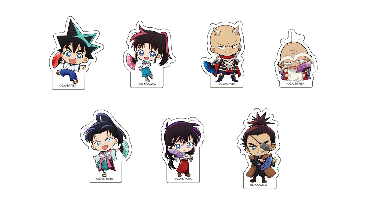「イメージカラーの扇子を持ったキャラクターたち」をコンセプトに描き起こされた鉄 刃、峰 さやか、鬼丸 猛、宮本 武蔵、佐々木 小次郎、大和 撫子、柳生十兵衛三厳の雅なデフォルメイラストを使用したフレークシールの7絵柄各1枚入りのセットです。 手帳やノートに貼りやすいミニサイズのフレークシールは、お好きなキャラクターでノートや手帳を可愛くデコレーション出来るアイテムです。